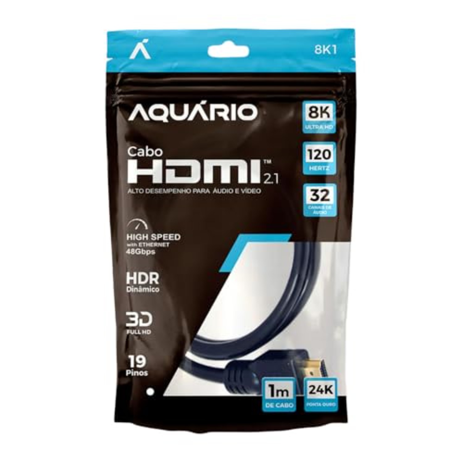 O Cabo HDMI 2.1 de 1 metro é a escolha ideal para quem busca máxima performance em jogos e entretenimento, com suporte à resolução 8K Ultra HD (7680x4320p). Desenvolvido para atender aos padrões mais exigentes do mercado, proporciona imagens com ultra definição e som imersivo com 32 canais de áudio.