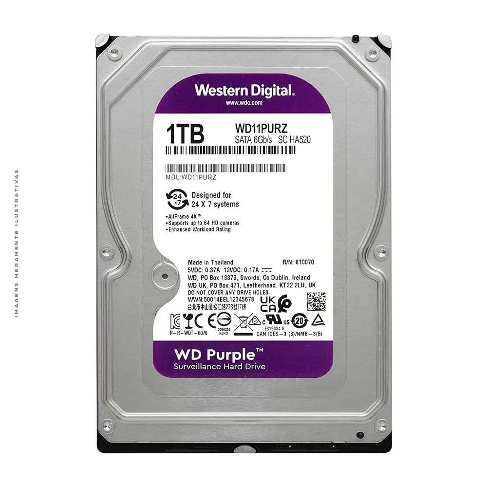 O HD Interno Western Digital Purple WD10PURZ de 1TB foi desenvolvido especialmente para sistemas de videomonitoramento. Com tecnologia otimizada para gravações contínuas 24 horas por dia, 7 dias por semana, ele oferece desempenho confiável e armazenamento seguro para até 64 câmeras HD. Sua velocidade de rotação de 5400 RPM e construção robusta garantem durabilidade, eficiência energética e operação silenciosa, tornando-o ideal para ambientes residenciais e comerciais que exigem segurança contínua.
