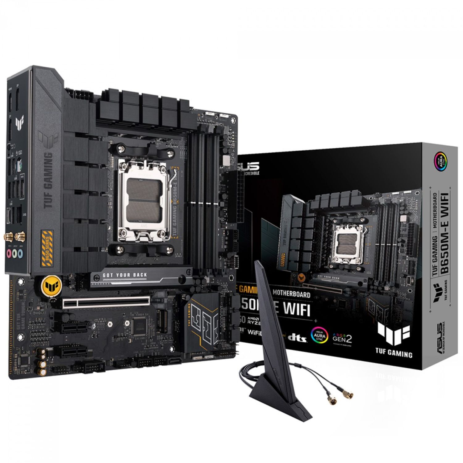 ASUS TUF GAMING B650M-E WIFI pega todos os elementos essenciais dos mais recentes processadores AMD Ryzen série 7000 e os combina com recursos prontos para jogos e durabilidade comprovada. Projetada com componentes de nível militar, uma solução de energia atualizada e um sistema de resfriamento abrangente, esta placa-mãe supera as expectativas com desempenho sólido e estável para maratonas de jogos. As placas-mãe TUF GAMING também passam por rigorosos testes de resistência para garantir que possam lidar com condições onde outras podem falhar. Esteticamente, este modelo incorpora elementos robustos de design geométrico e preto para refletir a confiabilidade e estabilidade que definem a série TUF GAMING.