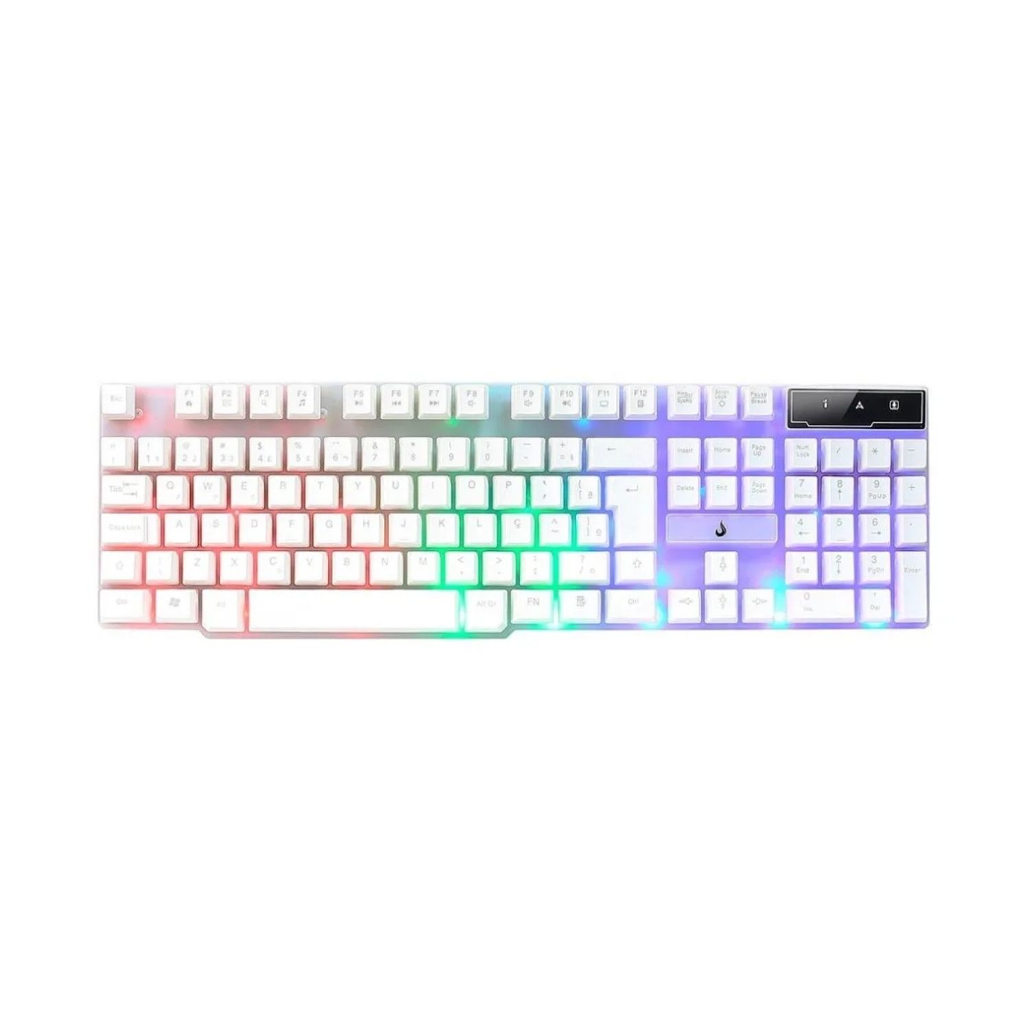 Teclado Gamer Rise Mode G1 Semi Mecânico Full RGB Rainbow USB Branco - RM-TG-01-FW O Teclado Gamer Rise Mode G1 Semi Mecânico Full RGB Rainbow USB Branco combina um design moderno e funcionalidade aprimorada, ideal para gamers que procuram estilo e eficiência em seu setup. Fabricado com material ABS resistente, o teclado oferece uma durabilidade impressionante, mantendo sua estrutura firme para sessões intensas de jogo ou trabalho. Seu acabamento em branco dá um toque sofisticado e elegante, enquanto a iluminação RGB Rainbow torna a experiência visual ainda mais imersiva, com luzes vibrantes que transformam o ambiente e aumentam a visibilidade das teclas.Embora seja um teclado de membrana, o G1 simula a sensação de teclas mecânicas, proporcionando uma experiência de digitação mais tátil e precisa, sem abrir mão do conforto. Este modelo é equipado com uma conexão USB para fácil plug and play, dispensando a necessidade de instalação de drivers e garantindo compatibilidade instantânea. Seu formato full-size oferece todas as teclas necessárias para uma navegação completa, ideal tanto para trabalho quanto para entretenimento, adaptando-se a múltiplos layouts de idioma e preferências.Com uma longevidade estimada em até 10 milhões de horas de uso, o teclado é robusto e pensado para durar. Suas dimensões (43,2 x 13,1 x 3,2 cm) são ideais para quem deseja um teclado que se destaque no setup, mas sem ocupar espaço excessivo na mesa. É a escolha perfeita para quem busca performance, durabilidade e um design marcante. Especificações:- Marca: Rise- Modelo: RM-TG-01-FW Características:- Tipo: Com fio- Material: ABS- Conector: USB - Teclado: Padrão Membrana- Cor: Branco- Cor do led: RGB Rainbow- Versão do teclado: Disponível em várias línguas- Longevidade do teclado :10 milhões de horas- Dimensões do teclado: 43.2 x 13.1 x 3.2CM **Atenção não é um teclado mecânico