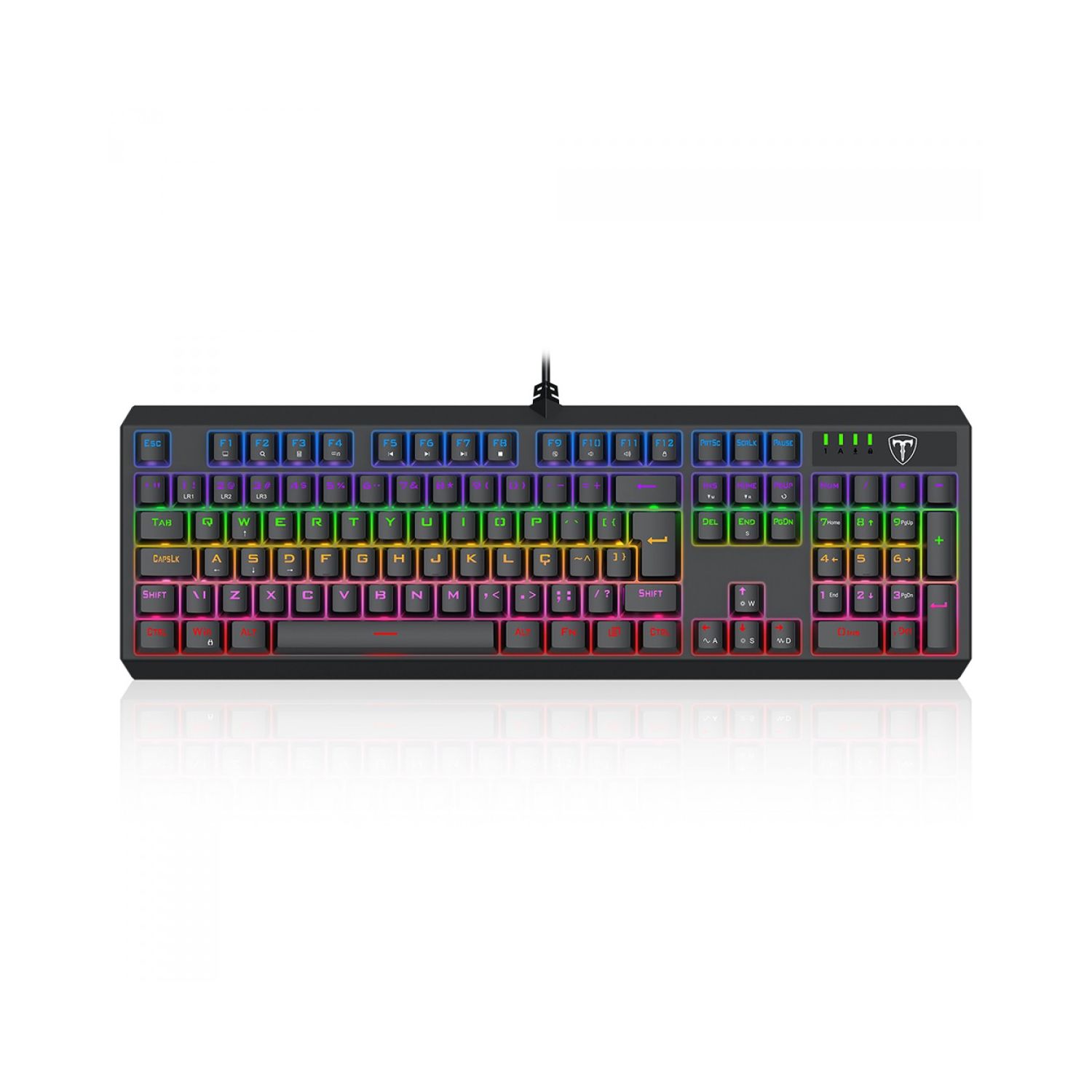 O T-DAGGER AXIS Rainbow é um teclado Full Size com layout ABNT2, ideal para quem precisa do teclado numérico no dia a dia. Equipado com switches marrons Dust-Proof, oferece acionamento mecânico tátil, durabilidade de até 50 milhões de cliques e resistência contra poeira.