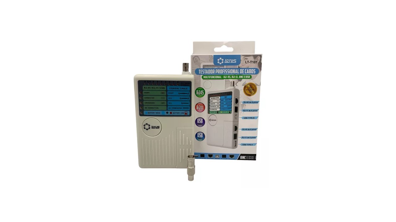 TESTADOR DE CABOS DE REDE RJ45 RJ11 E USB A E USB B LOTUS LT-T101